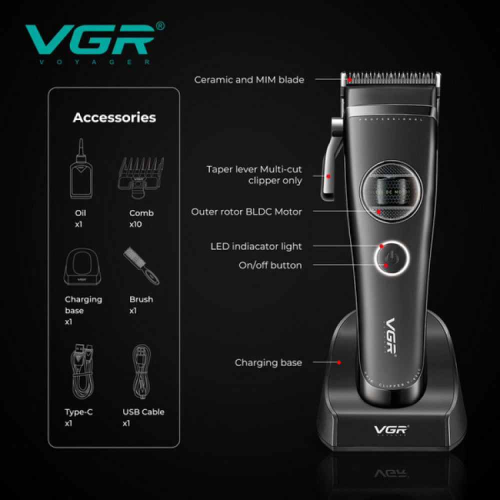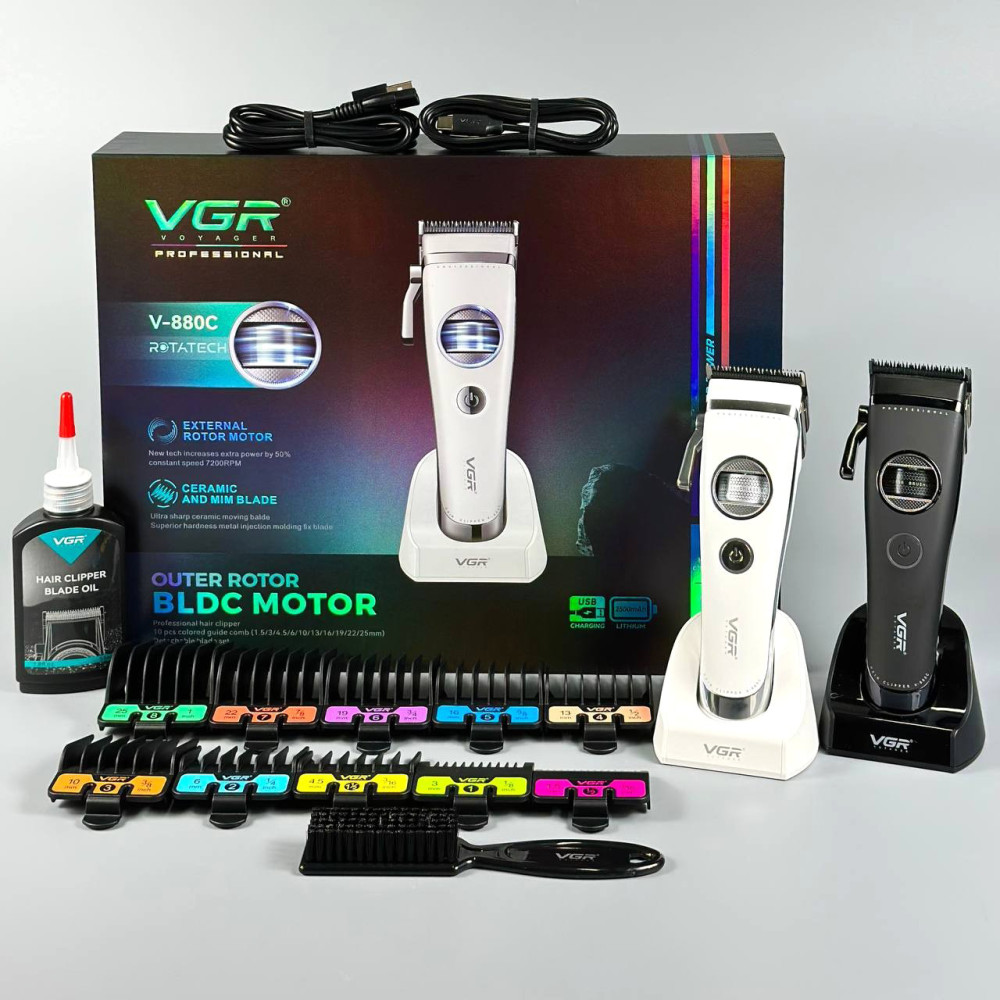 Машинка для стрижки (clipper) VGR V-880C (ROTOR MOTOR EXTERNAL, MIM BLADE, 11 насадок, док-станція) (Гарантія на перевірку 3 міс.)