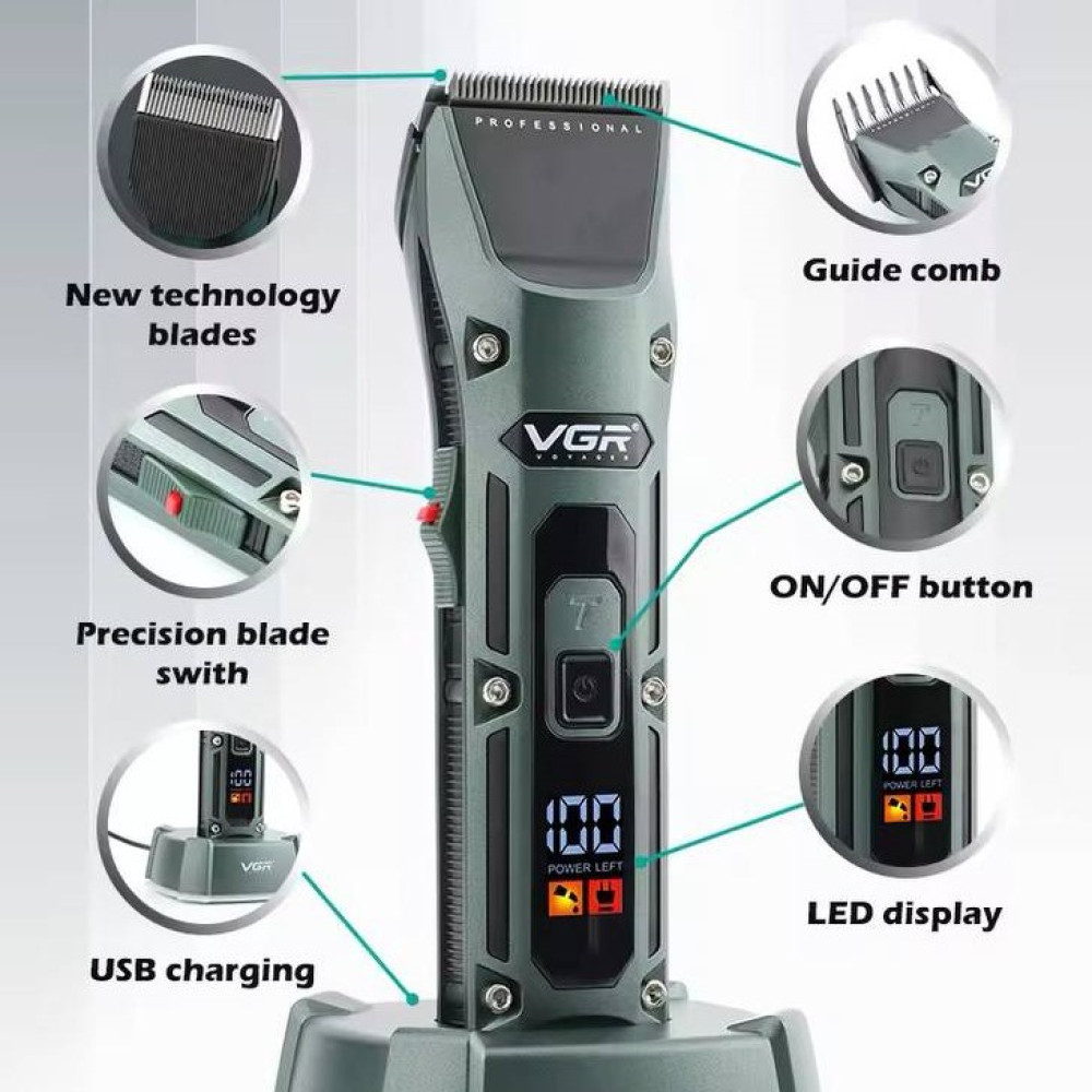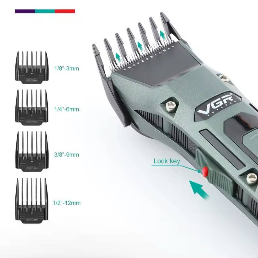 Машинка для стрижки VGR V-696 (clipper) акумуляторна (4 насадки, LED display) (Гарантія на перевірку 3 міс.)