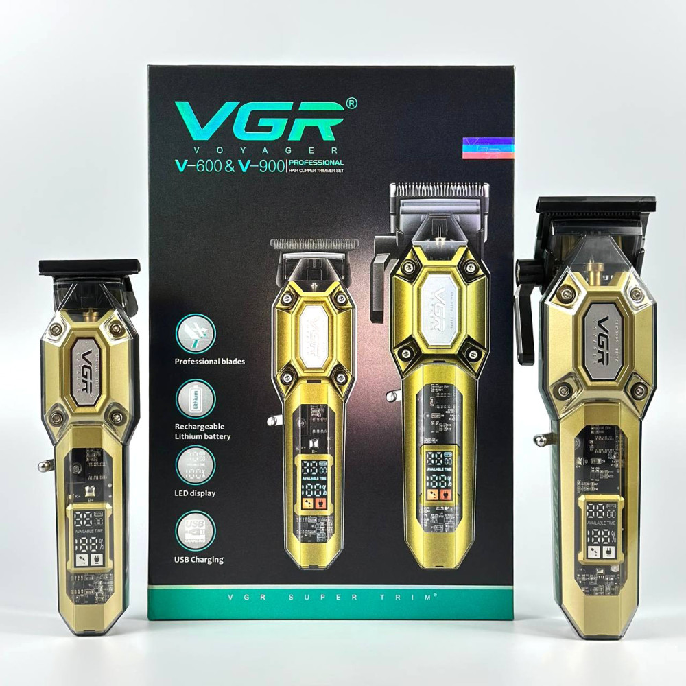 Чоловічий набір VGR V-600&900 2в1 (акумуляторна машинка для стрижки, тример, 10 насадок, LED display, 7000 RPM) (Гарантія на перевірку 3 міс.)