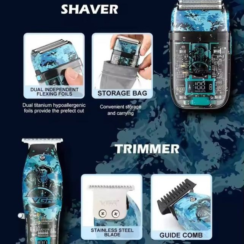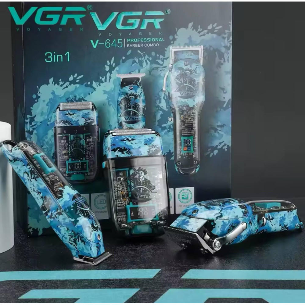 Чоловічий набір VGR V-645 3в1 (акумуляторна машинка для стрижки (clipper), тример і електробритва (шейвер)) (Гарантія на перевірку 3 міс.)