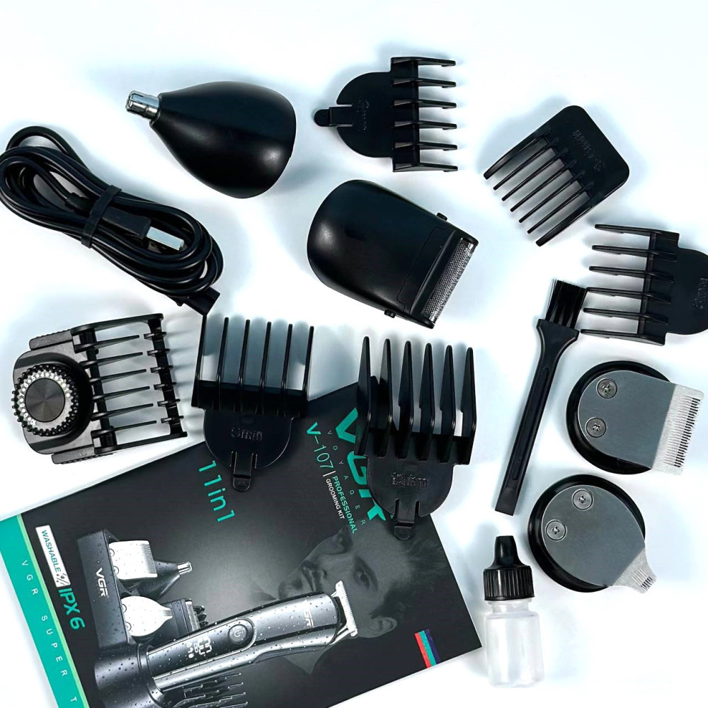 Набір для стрижи VGR V-107 11in1 (10 насадок, LED display) (Гарантія на перевірку 3 міс.)