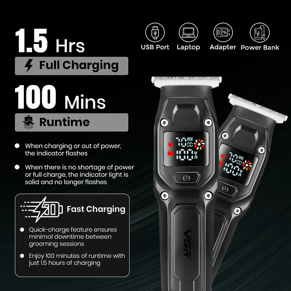 Тример VGR V-964 (4 насадки, 7000RPM, LED Display) (Гарантія на перевірку 3 міс.)