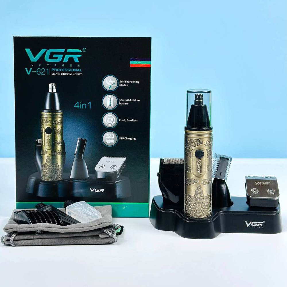 Тример VGR V-621 4в1 (4 насадки, шейвер, тример для носа, тример для тіла) (Гарантія на перевірку 3 міс.)
