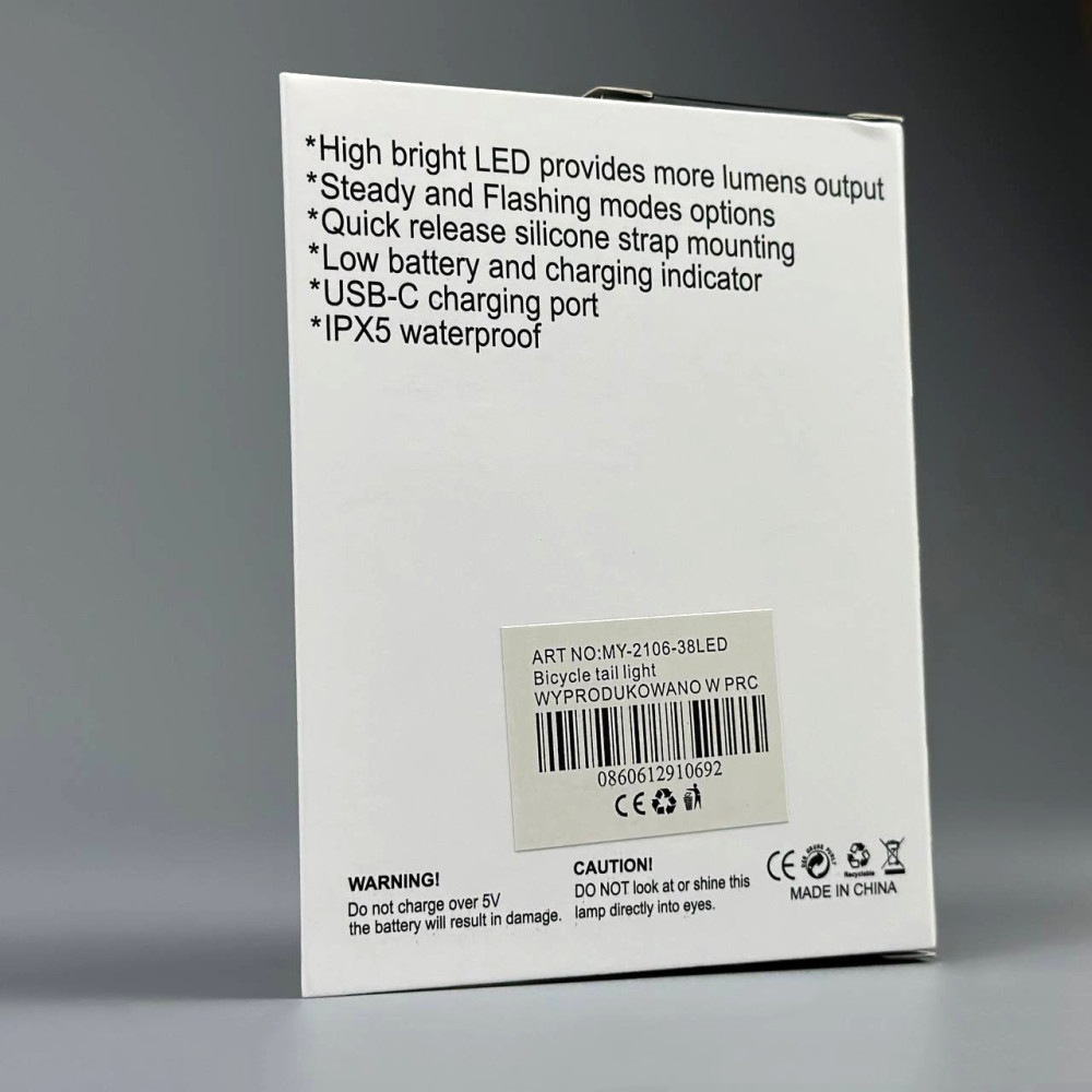 Велофара MY-2106-38LED STOP (waterproof, Li-Ion акумулятор, Type-C)