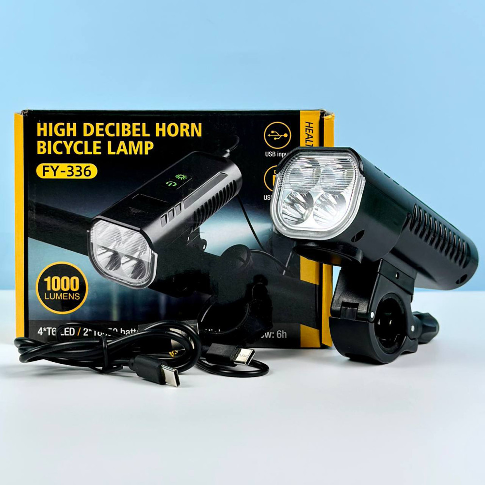 Велофара з сигналом FY-336, 2000-4T6 (виносна кнопка, Waterproof, індикація заряду, Li-Ion акумулятор, Micro)