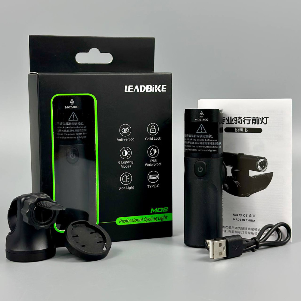 Велоліхтар LEADBIKE M02-OSRAM (800LM, 2500mAh, Child lock, Li-Ion акумулятор, Type-C)