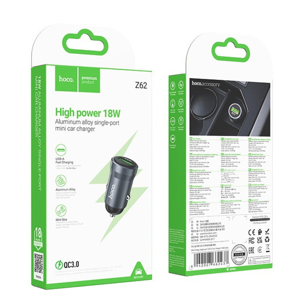 Автомобільний зарядний пристрій Hoco Z62 Energy QC3.0