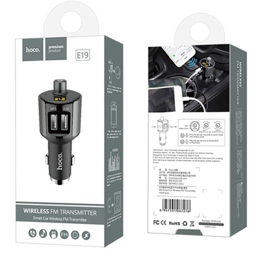 FM Модулятор (Автомобільний зарядний пристрій) Hoco E19 2.4A Bluetooth