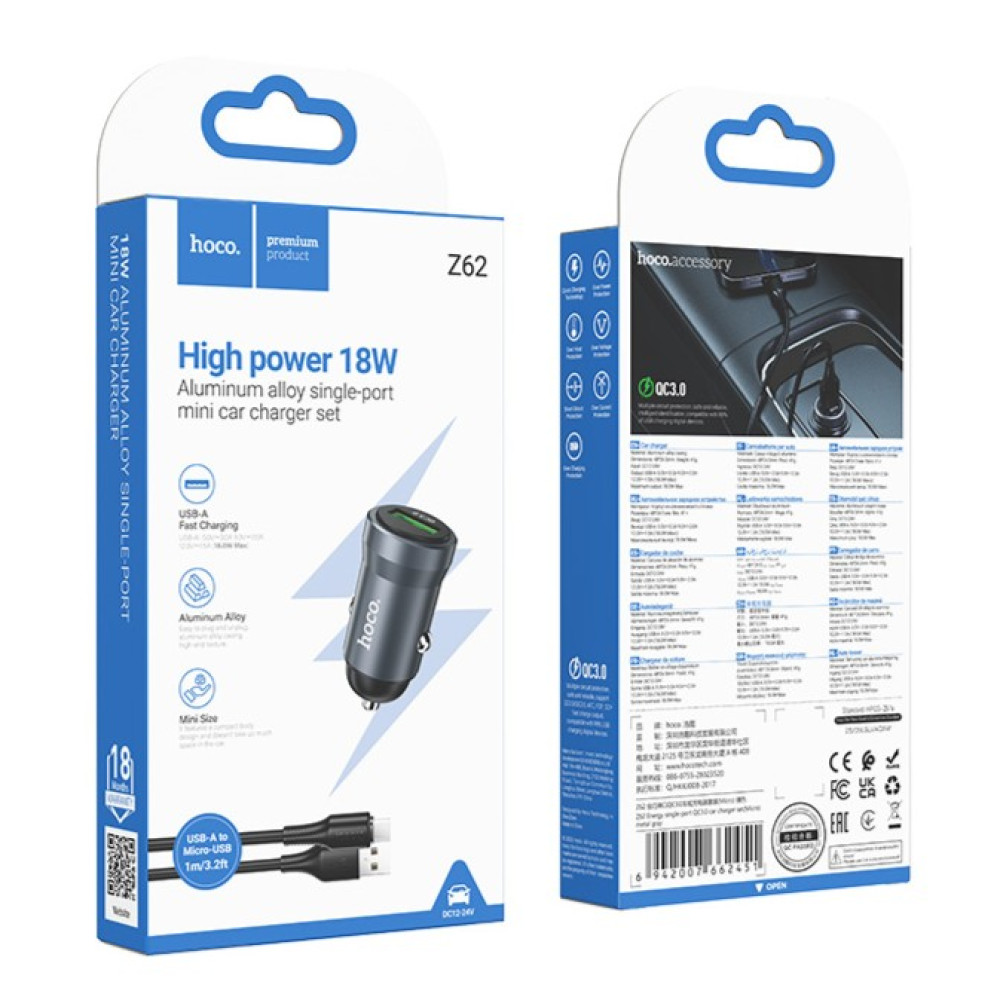 Автомобільний зарядний пристрій Hoco Z62 Energy QC3.0 Micro