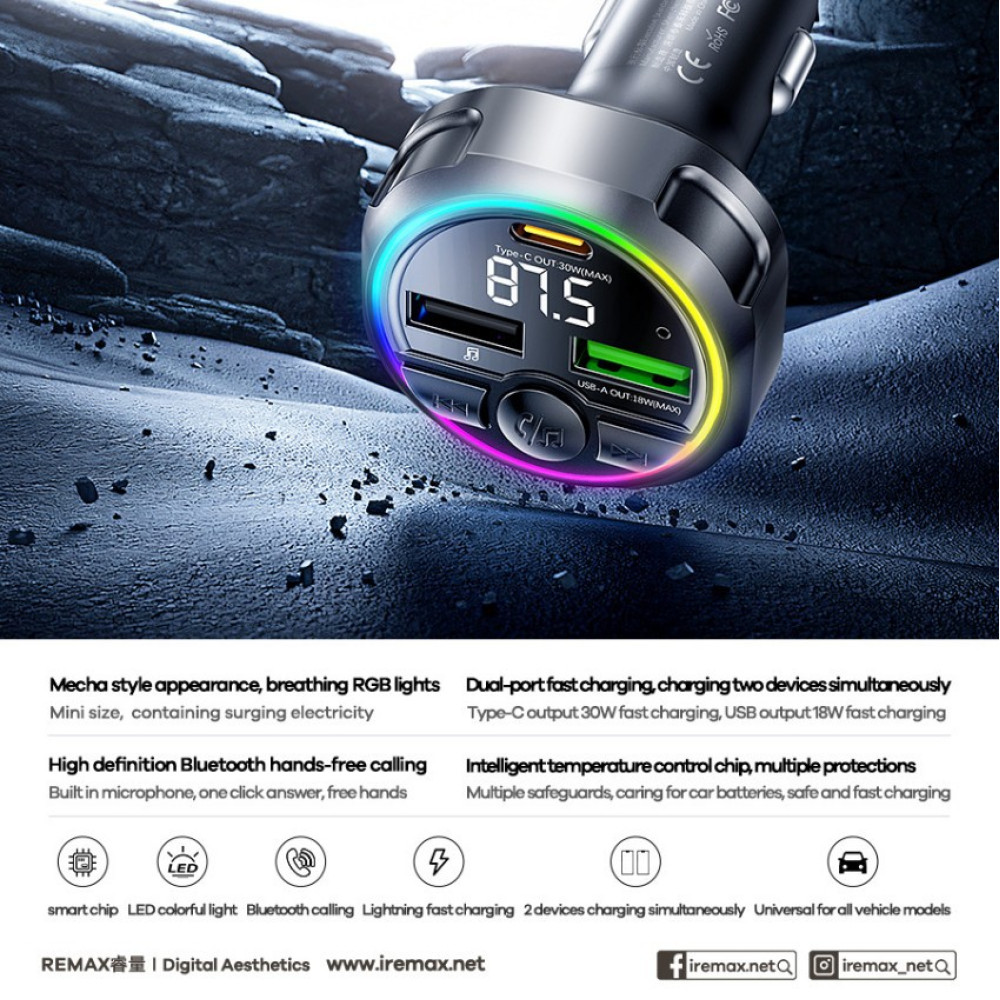 Автомобільний зарядний пристрій Remax CC02 RGB 48W