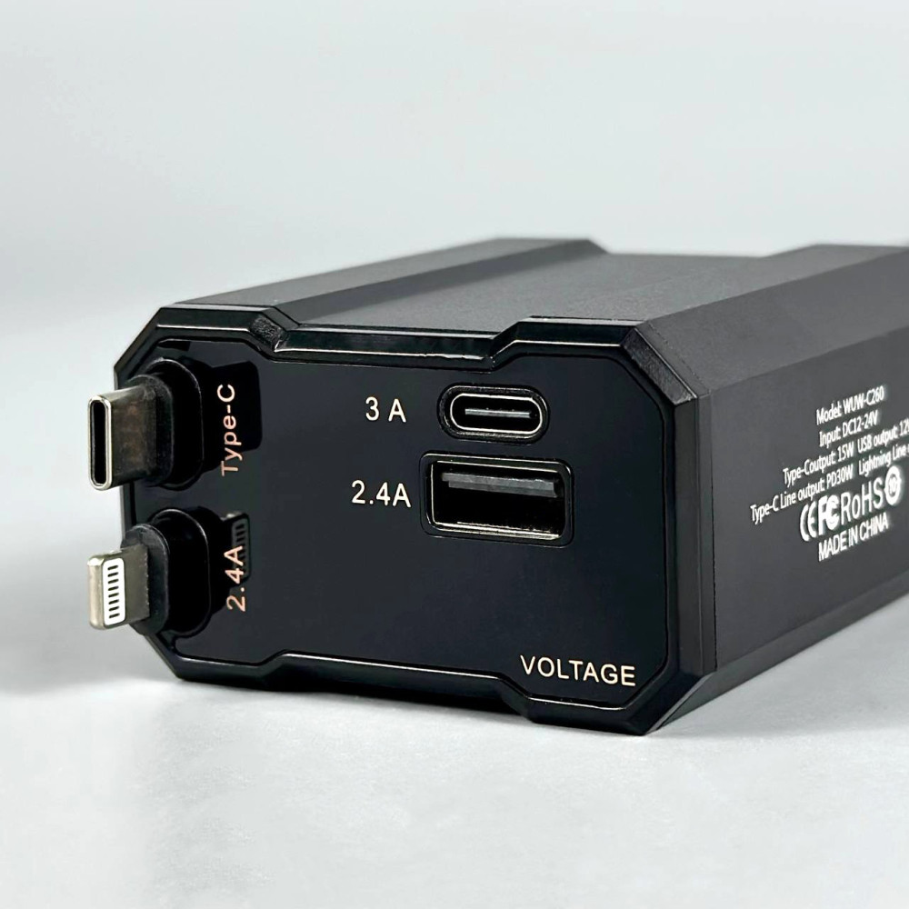 Автомобільний зарядний пристрій WUW C260 2.4A+PD30W (with cable Type-C+Lightning)