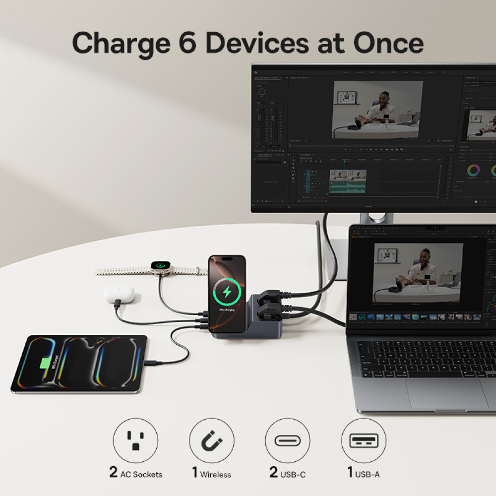 Бездротовий зарядний пристрій Baseus Nomos ND11 6in1 Charging Station Magnetic Wireless 67W 1.5m (E00078801123-00)