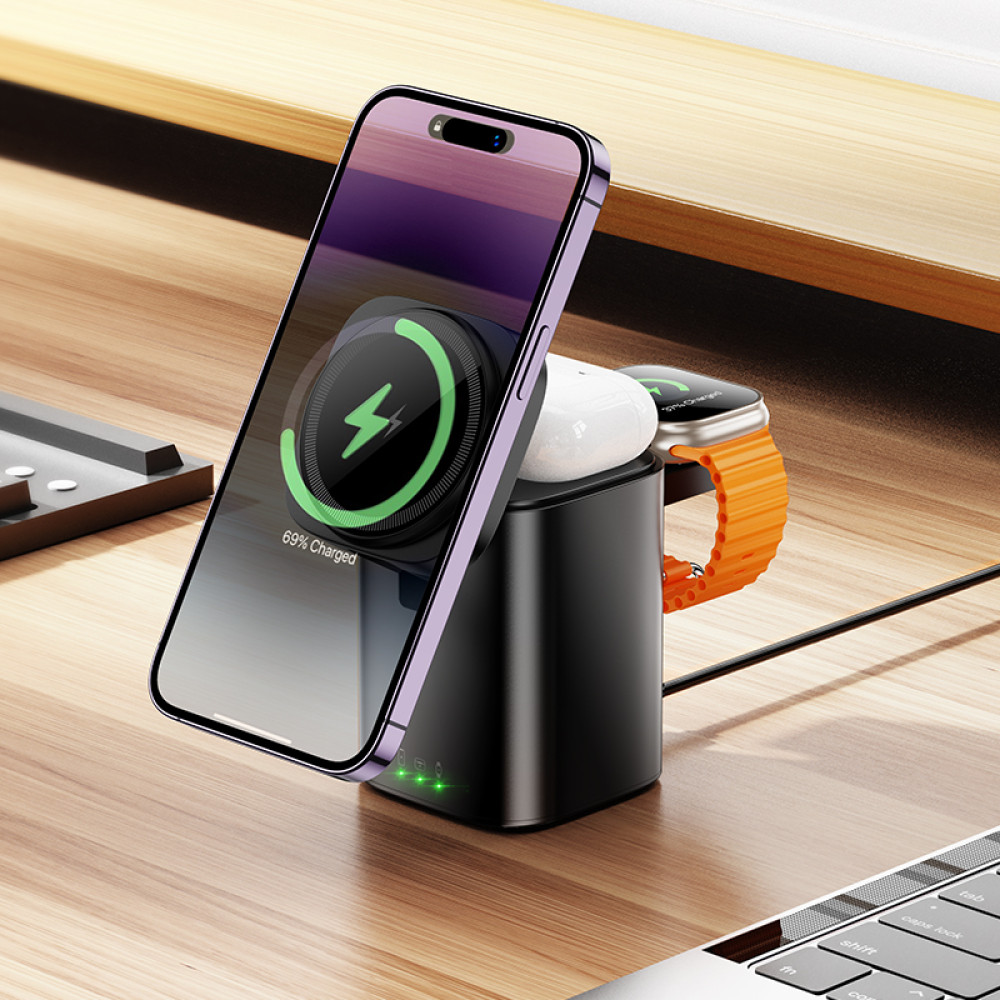 Бездротовий зарядний пристрій Hoco CQ20 Clever 3in1 15W
