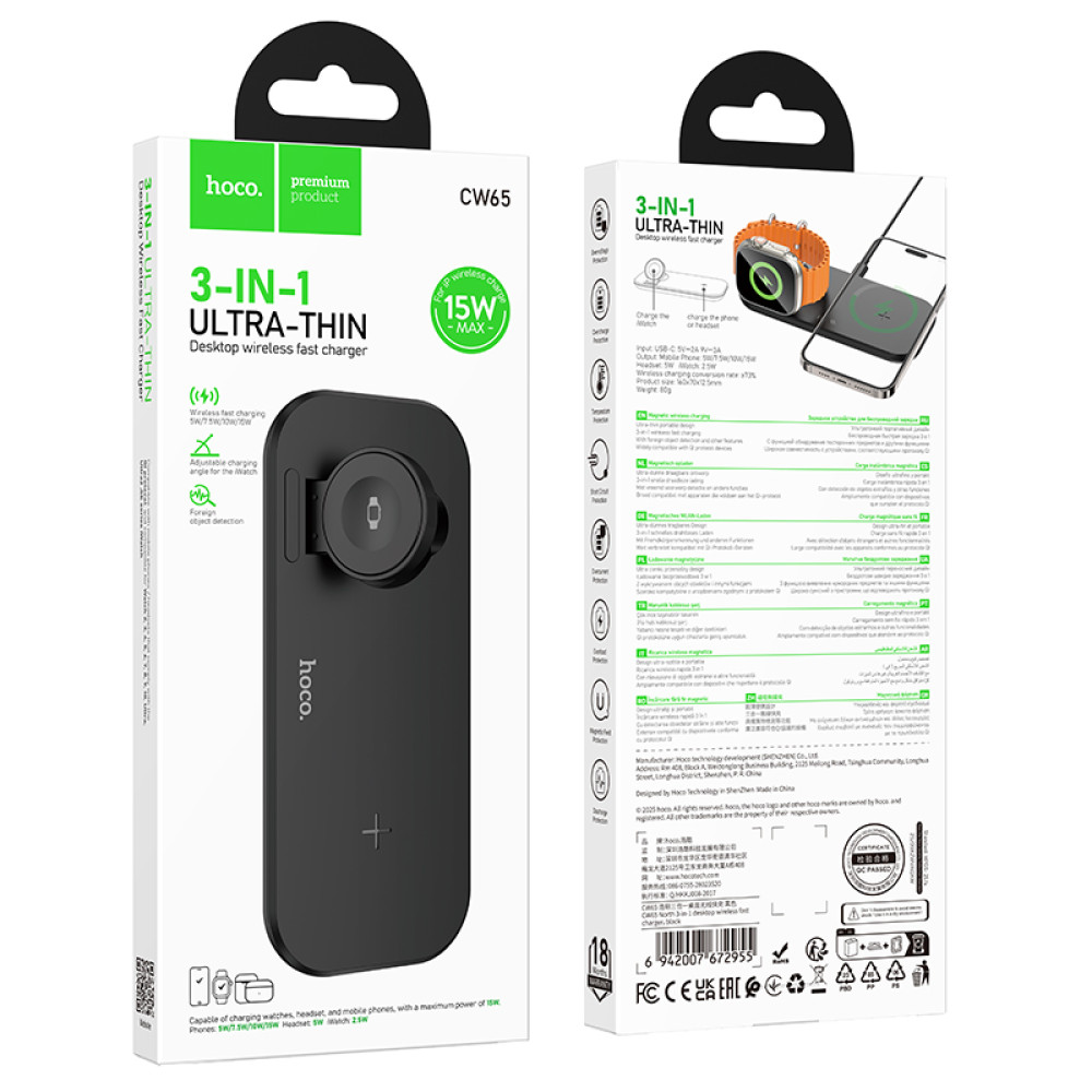 Бездротовий зарядний пристрій Hoco CW65 North 3in1 15W