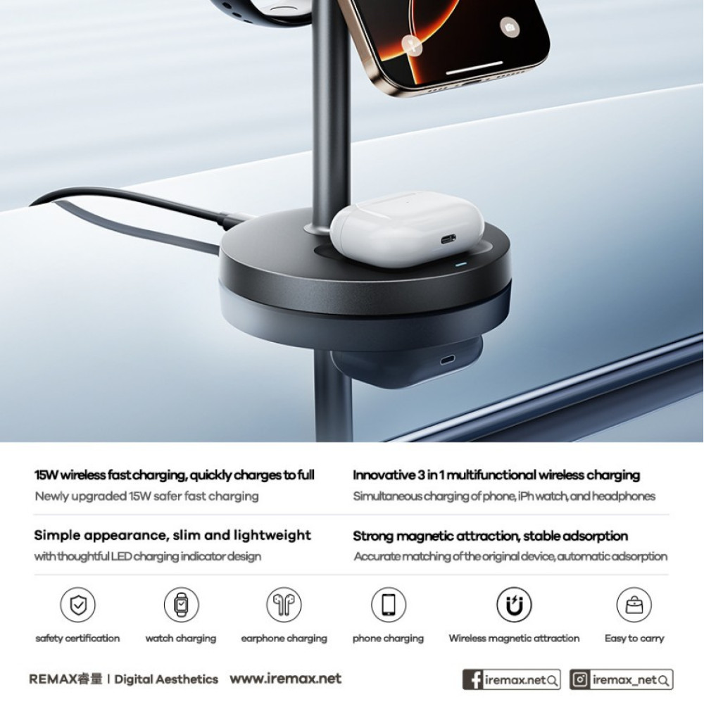 Бездротовий зарядний пристрій Remax CW01 Upgrade free 3-in-1 20.5W