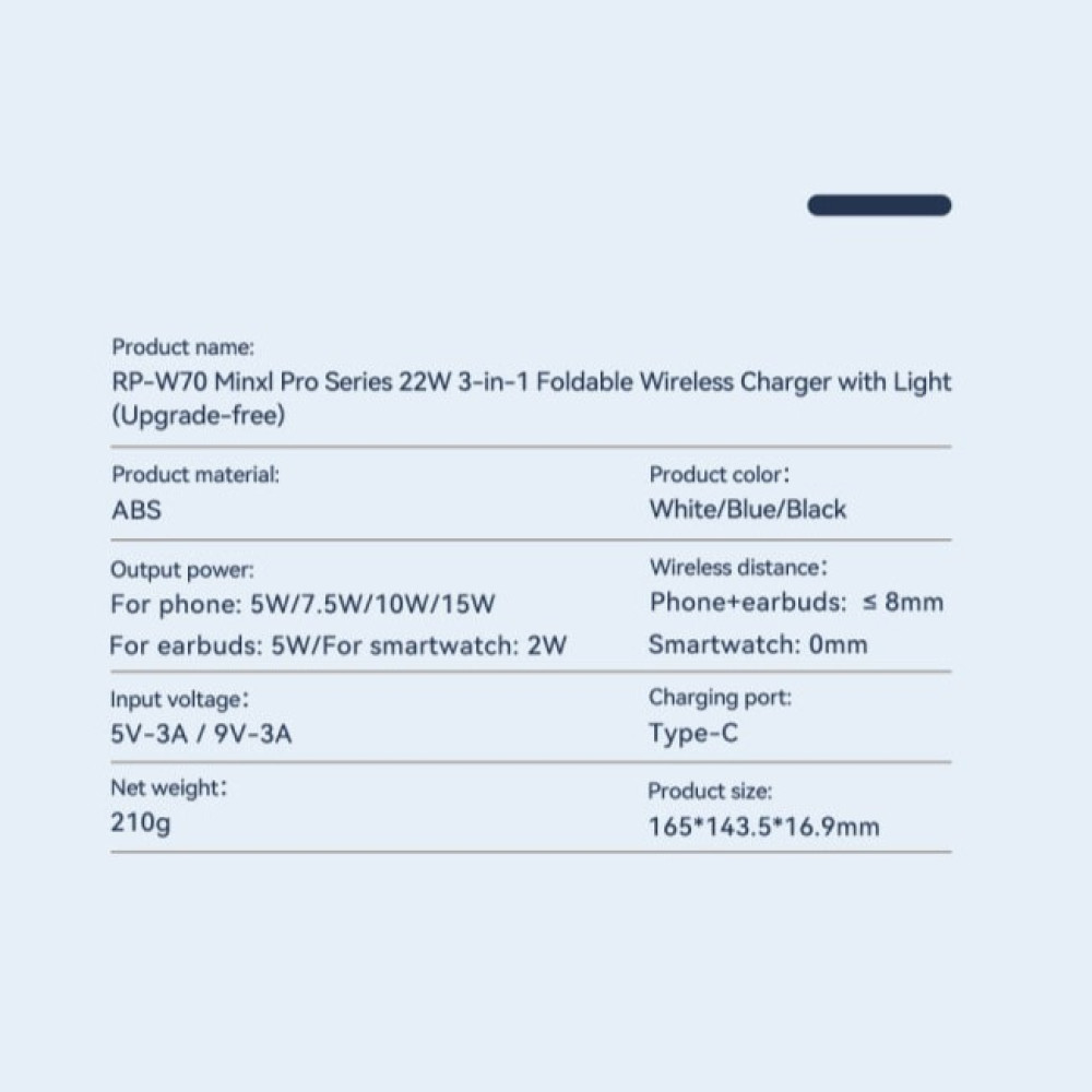 Бездротовий зарядний пристрій Remax RP-W70 Minxl Pro Series 3in1 22W