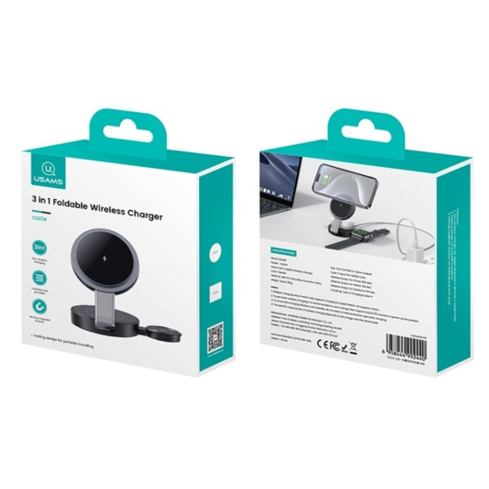 Бездротовий зарядний пристрій Usams US-CD234 3in1 15W