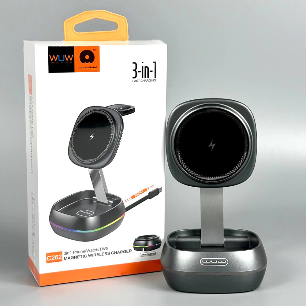 Бездротовий зарядний пристрій WUW C262 3in1 15W (with cable Type-C)