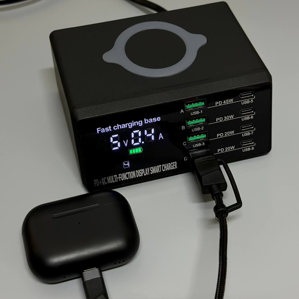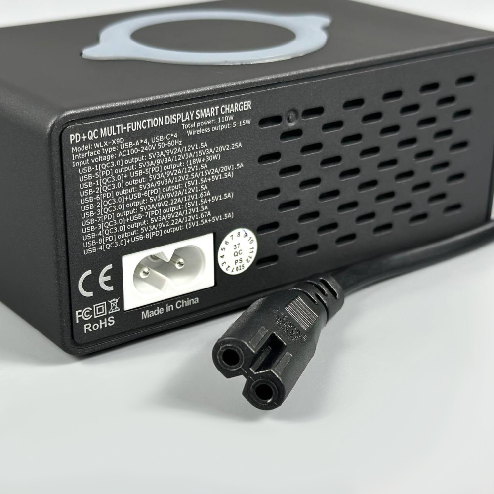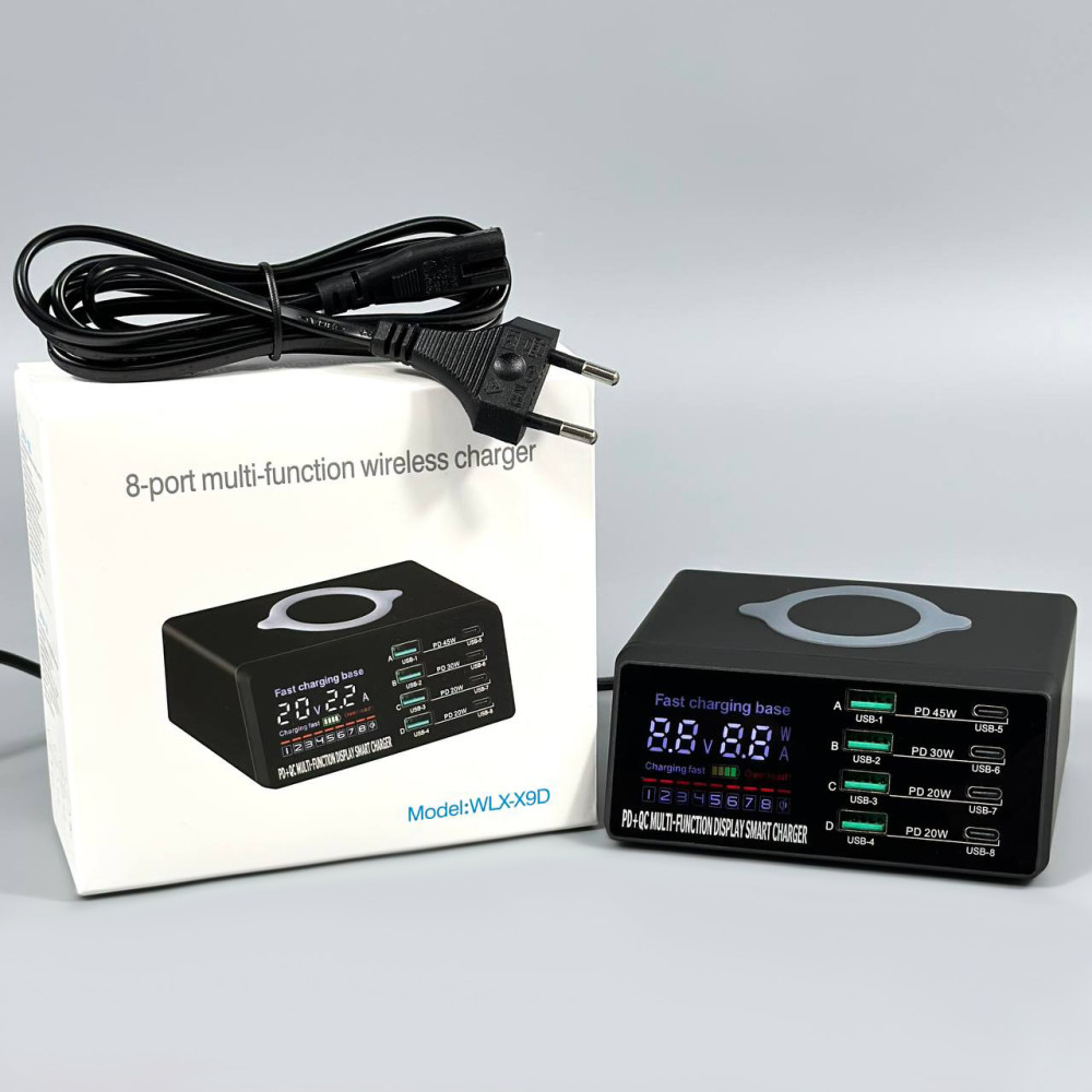 Мережева зарядна станція WLX-X9D на 8 портів PD+QC3.0 (4 USB-A, 4 Type-C) з бездротовою зарядкою (Гарантія на перевірку 3 міс.)