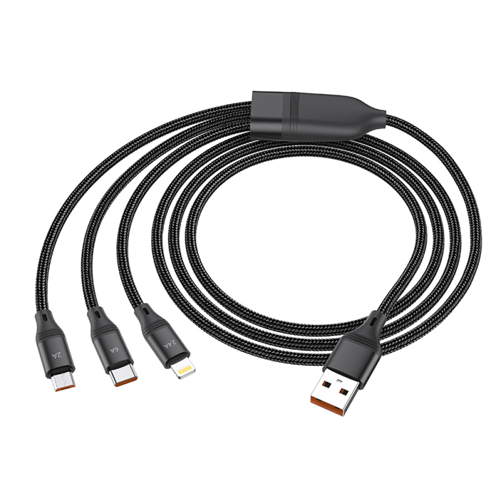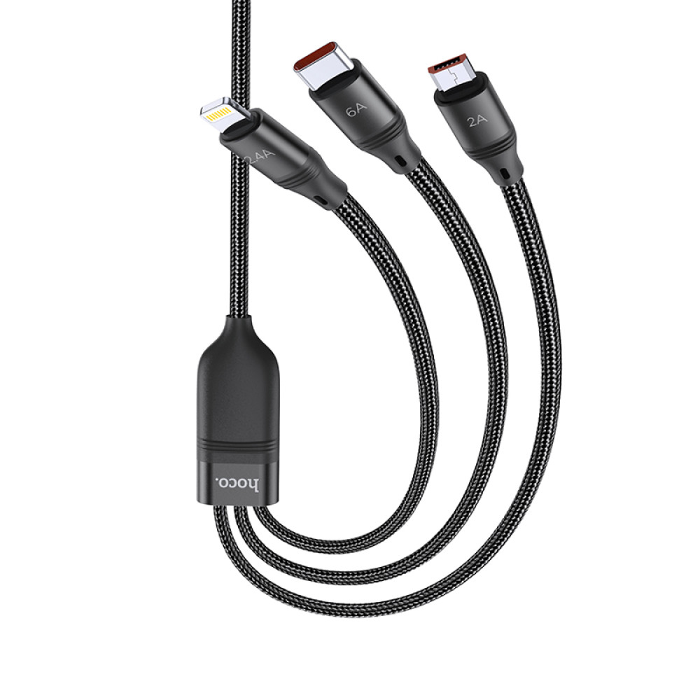 Data Cable Hoco U104 3in1 Moulder Type-C+Lightning+Micro 6A 1.2m