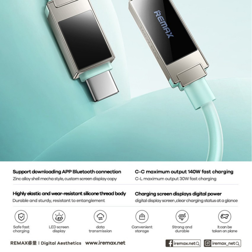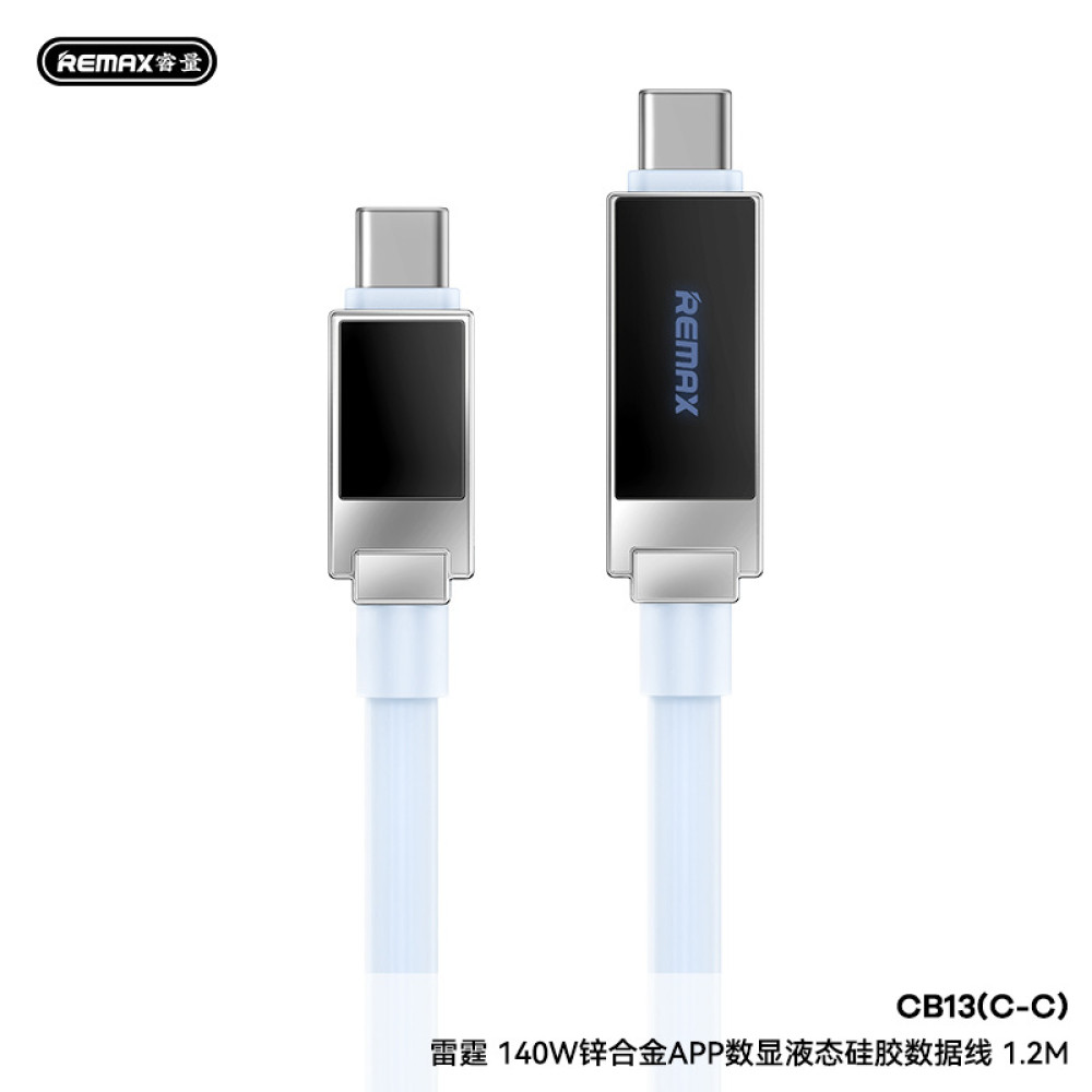 Data Cable Remax CB13 Thunder Zinc Alloy Display Type-C to Type-C 140W 1.2m