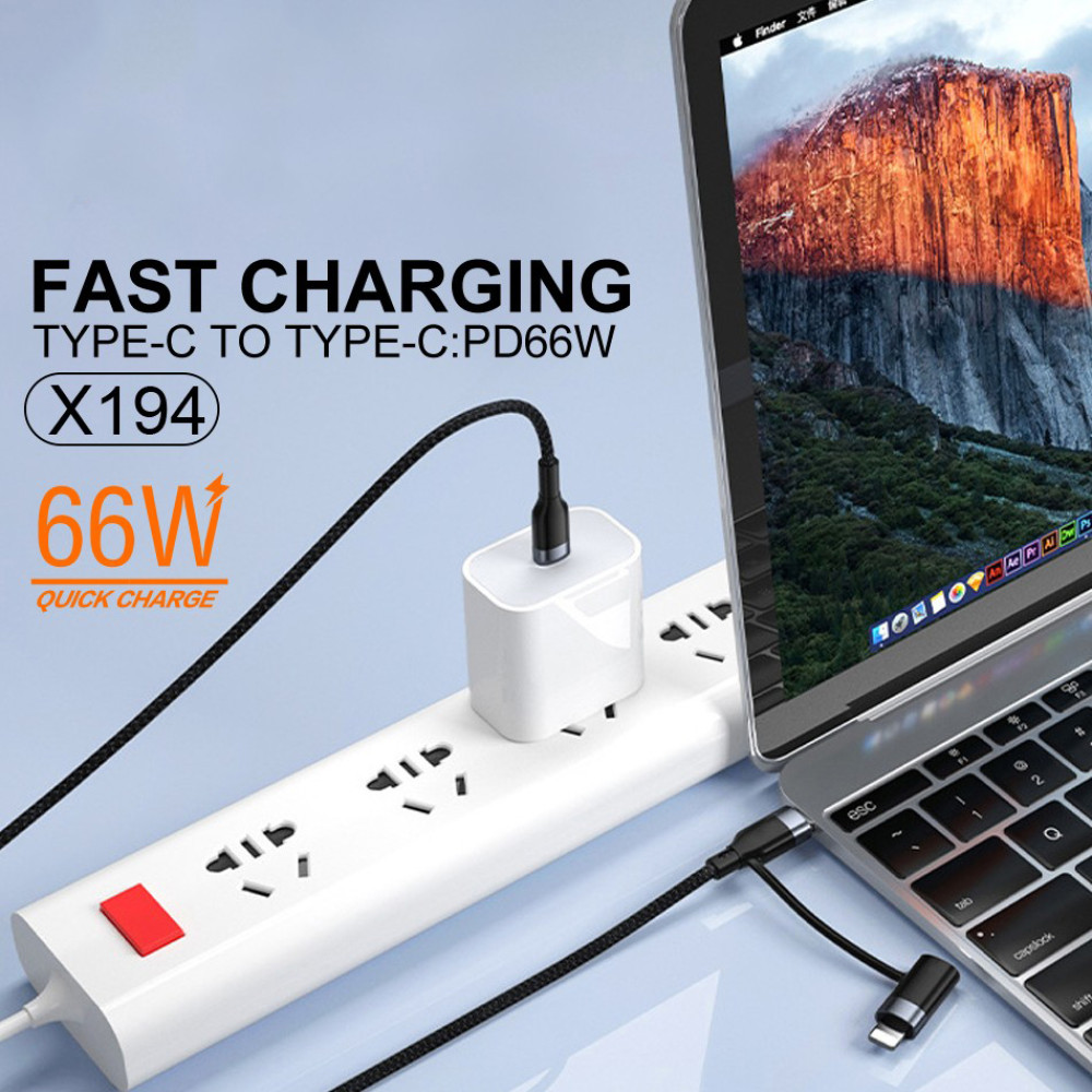 Data Cable WUW X194 2in1 Type-C+Type-C to Lightning 1m