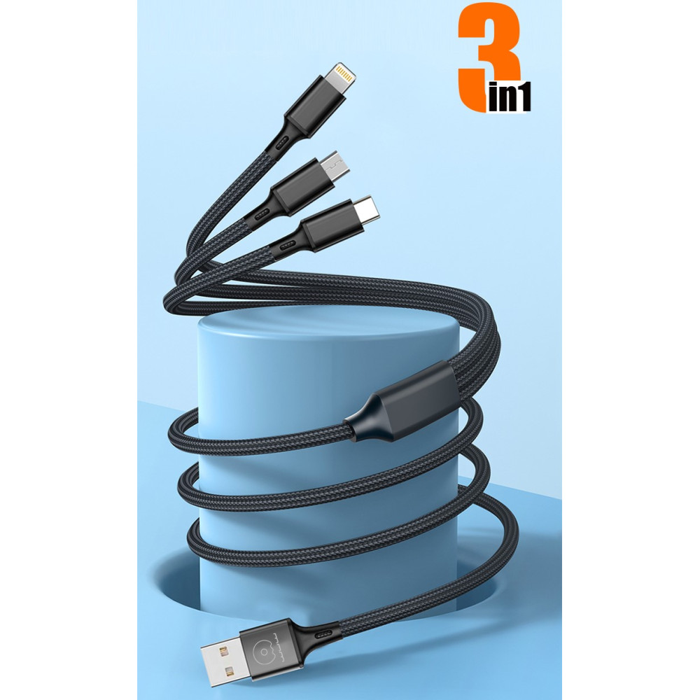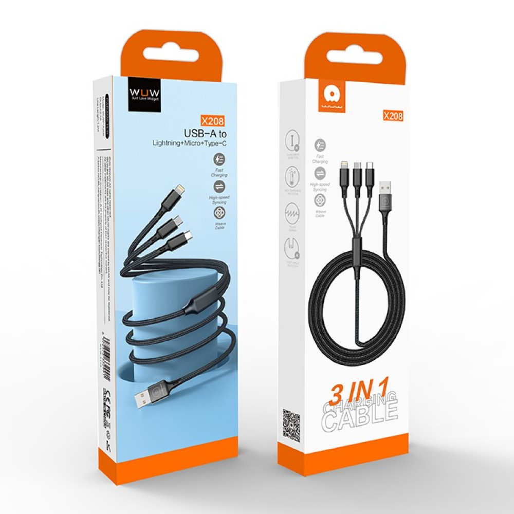 Data Cable WUW X208 3in1 Lightning+Micro+Type-C 1m