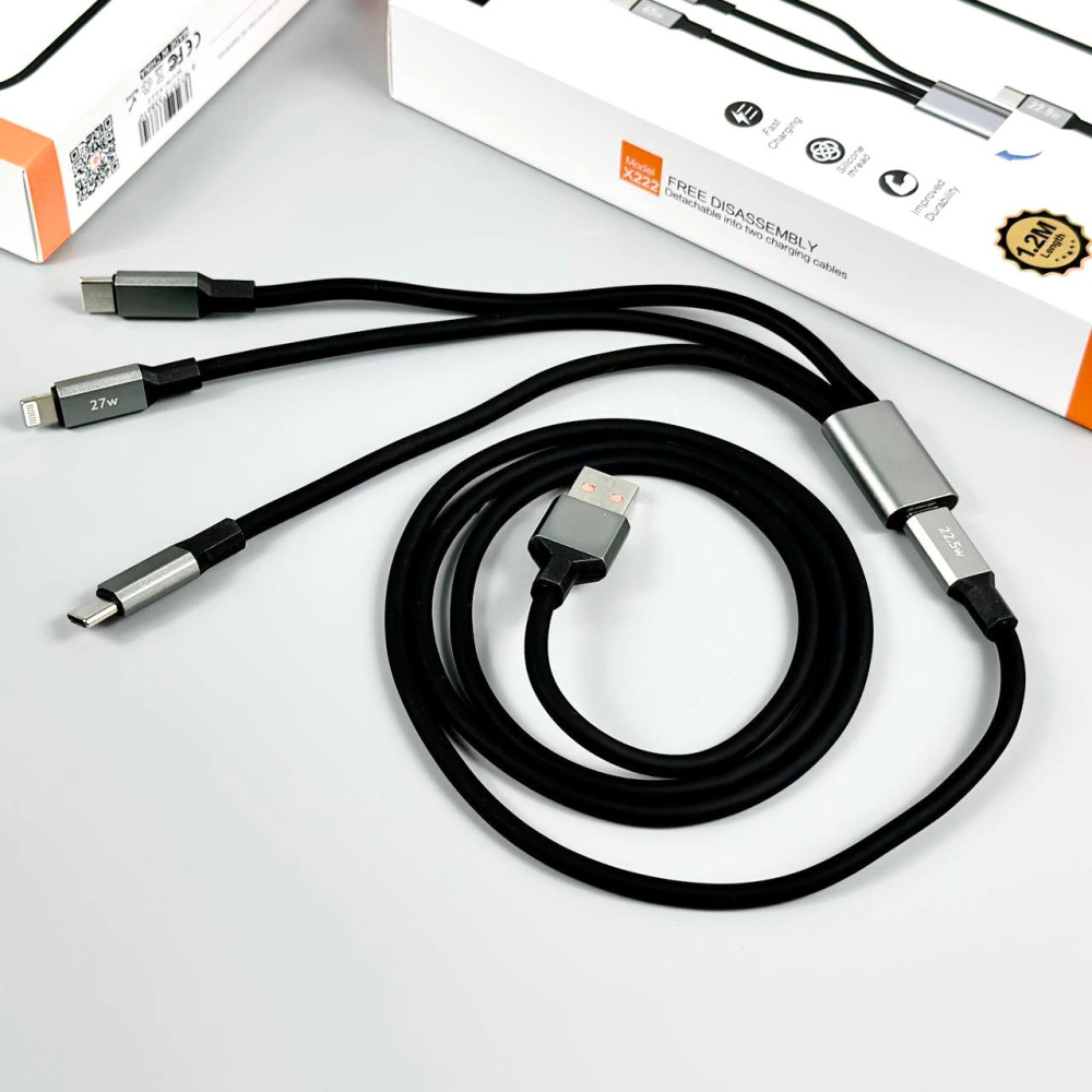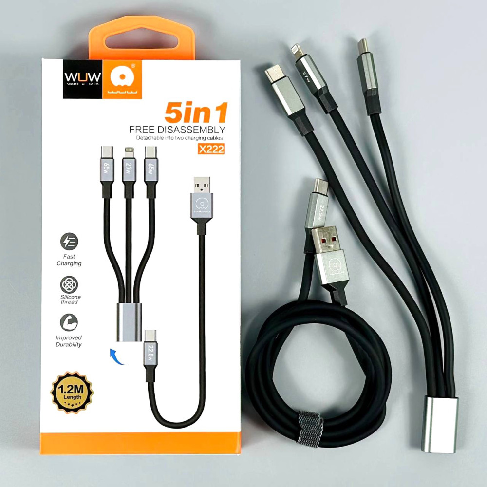 Data Cable WUW X222 5in1 Lighning+2Type-C to Type-C+USB 1.2m