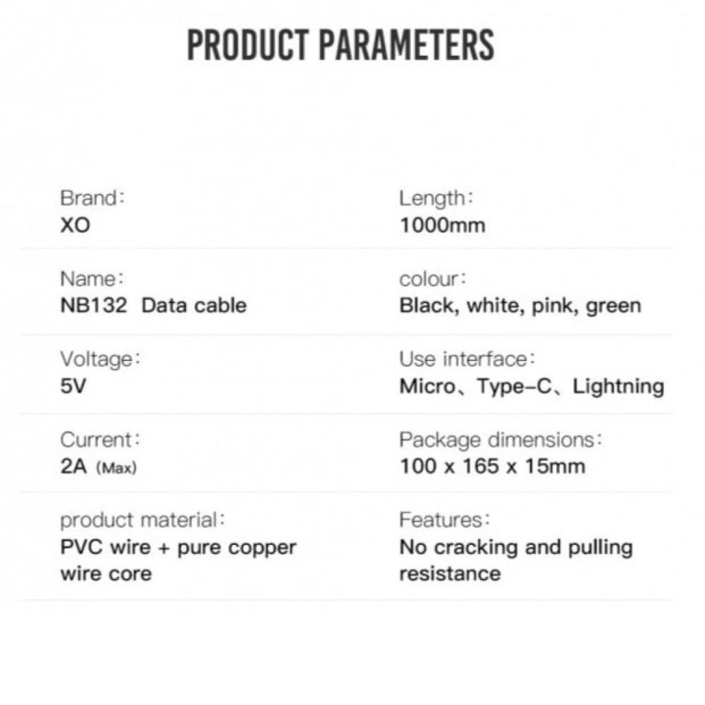 Data Cable XO NB132 Macaron with hard tail Micro 1m