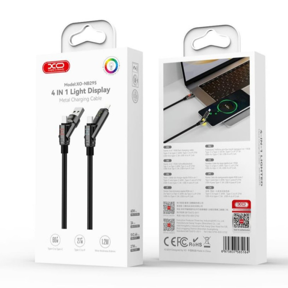 Data Cable XO NB295 4in1 USB to Type-C+Lightning to Type-C 1.2m