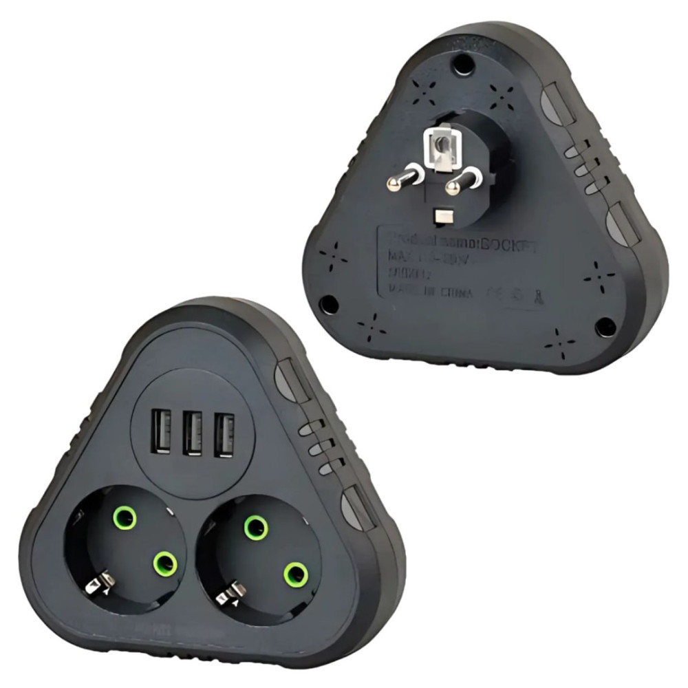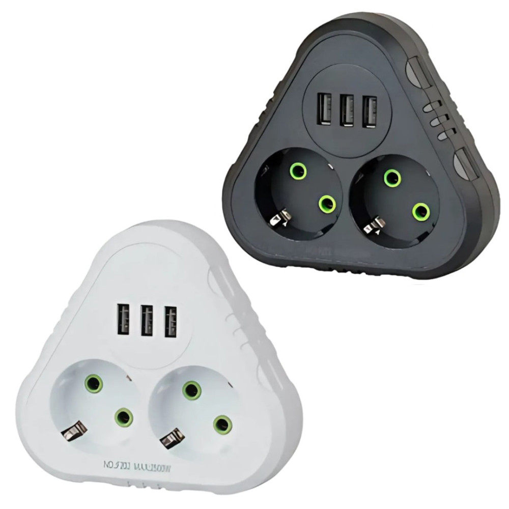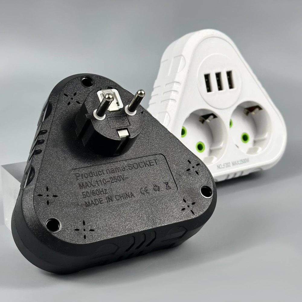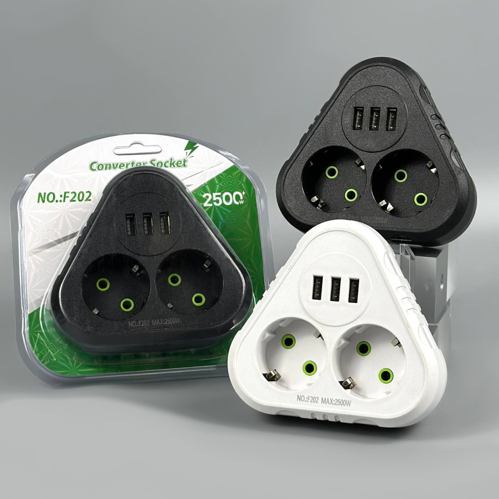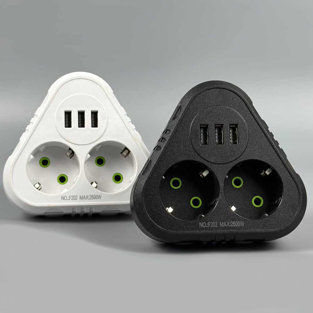 Мережевий розгалужувач із заземленням F202 3USB 2 розетки 2500W, 10A (Гарантія на перевірку 1 міс.)