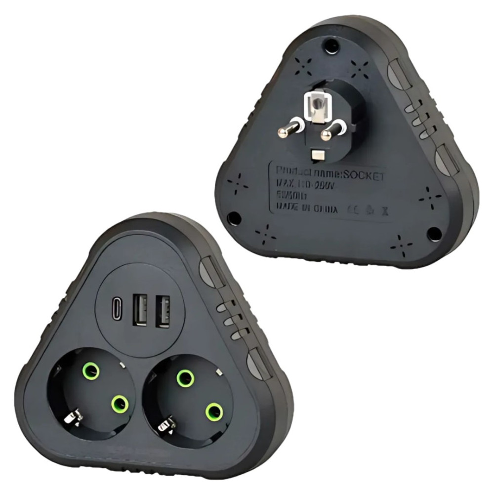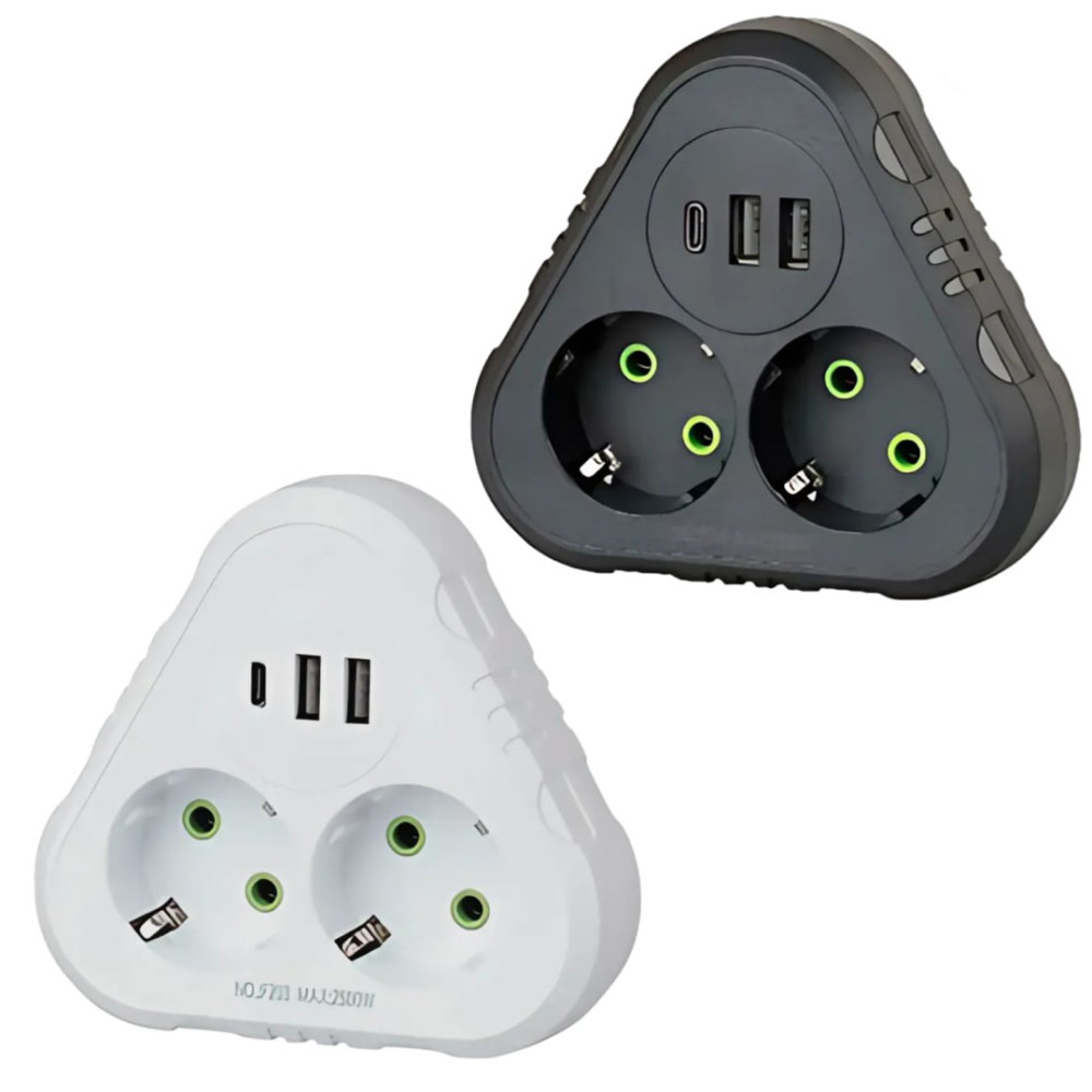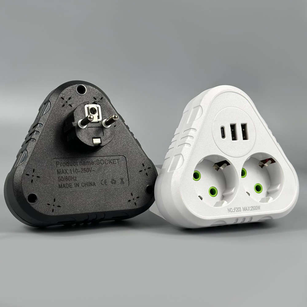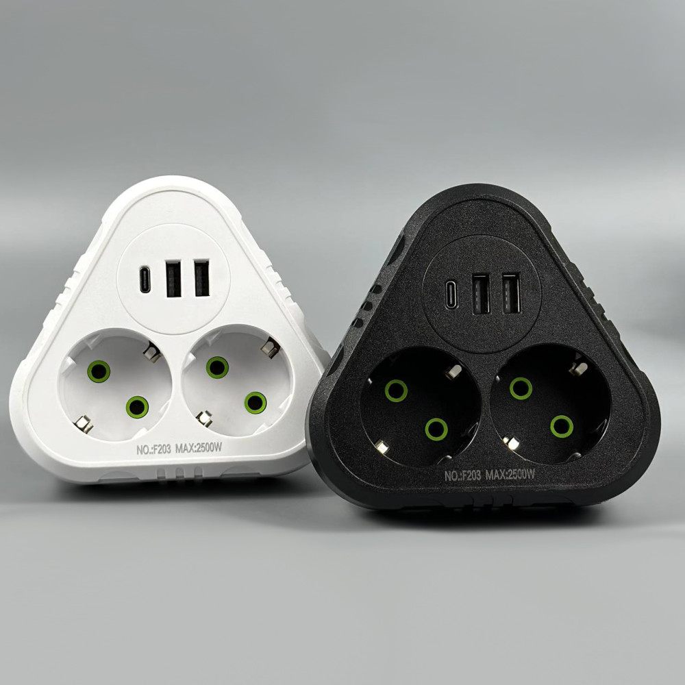 Мережевий розгалужувач із заземленням F203 2USB+Type-C 2 розетки 2500W, 10A (Гарантія на перевірку 1 міс.)
