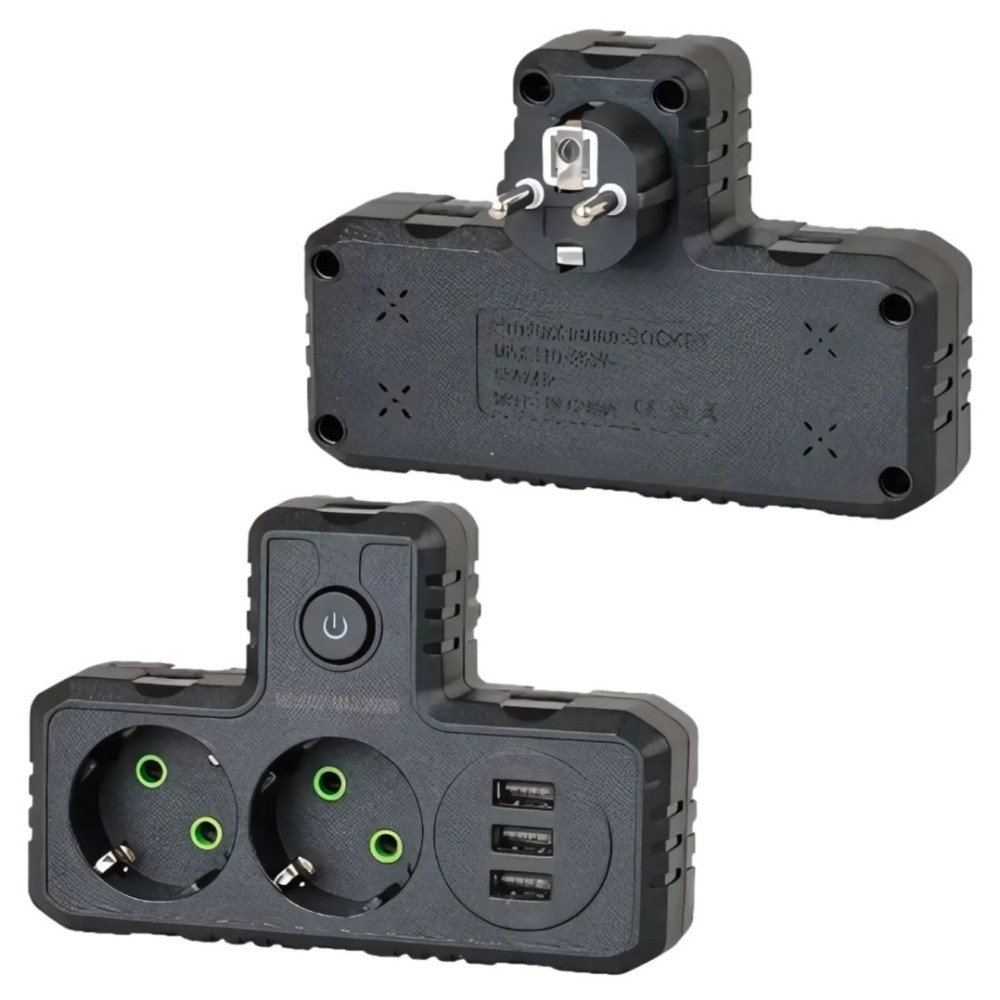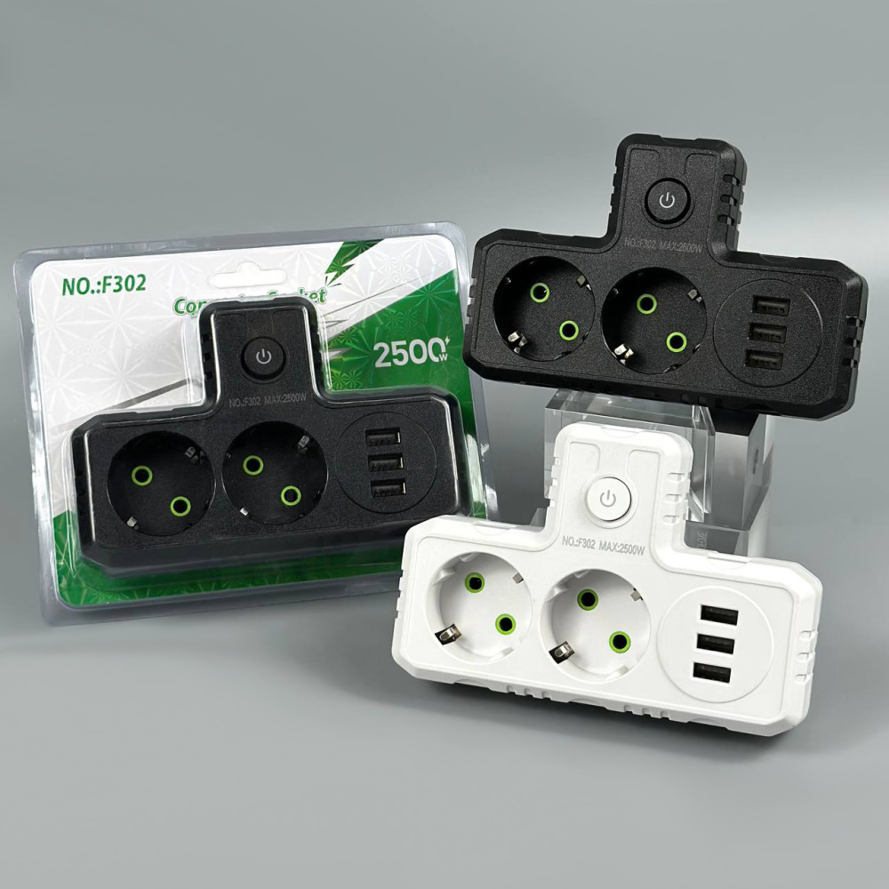 Мережевий розгалужувач із заземленням F302 3USB 2 розетки 2500W, 10A (Гарантія на перевірку 1 міс.)