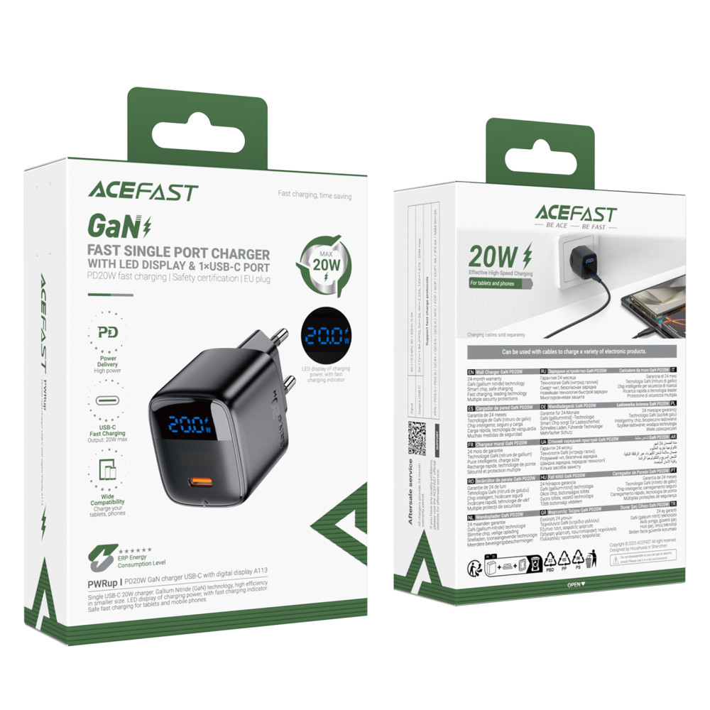 Мережевий зарядний пристрій AceFast A113 GaN PD20W