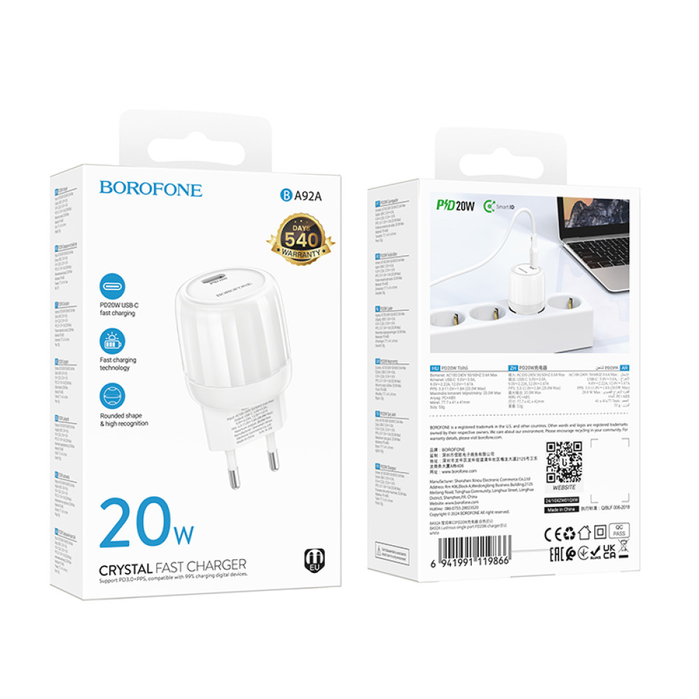 Мережевий зарядний пристрій Borofone BA92A Lustrous PD20W