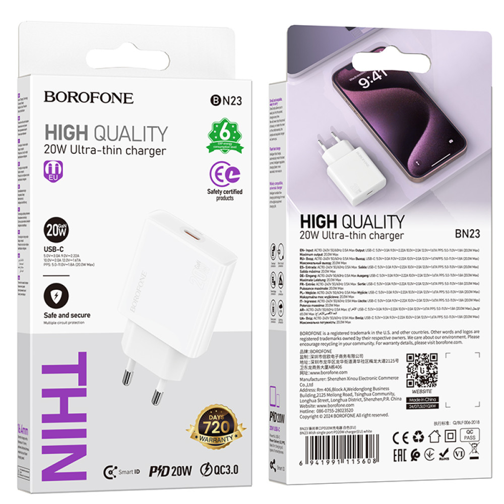 Мережевий зарядний пристрій Borofone BN23 Wish GaN PD20W