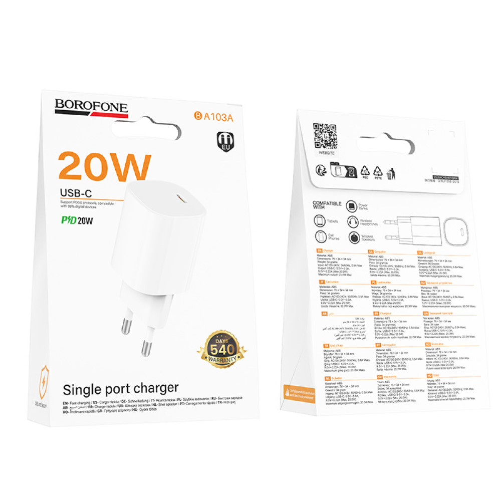 Мережевий зарядний пристрій Borofone BA103A Pudding PD20W