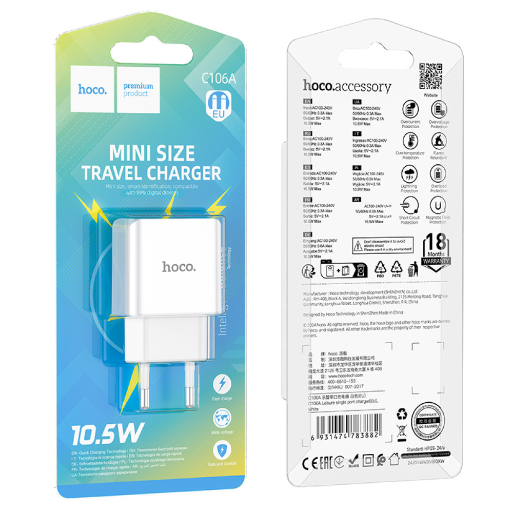 Мережевий зарядний пристрій Hoco C106A Leisure 10.5W