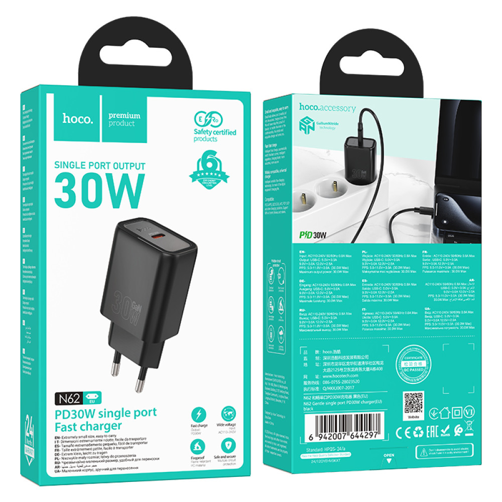 Мережевий зарядний пристрій Hoco N62 Gentle GaN PD30W