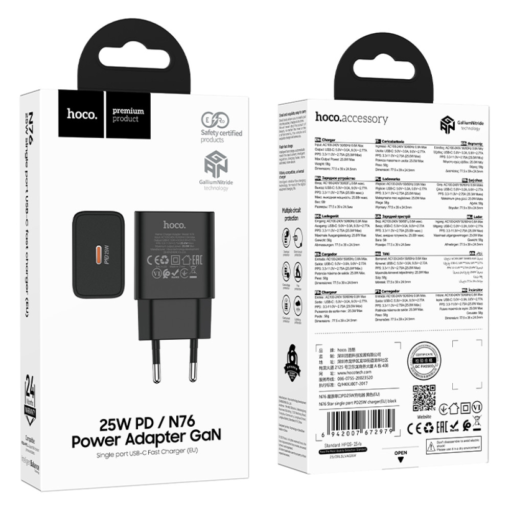 Мережевий зарядний пристрій Hoco N76 Star GaN PD25W