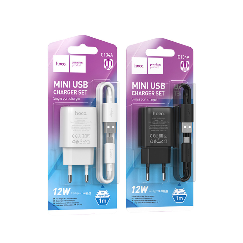 Мережевий зарядний пристрій Hoco C134A Solid 2.4A Micro