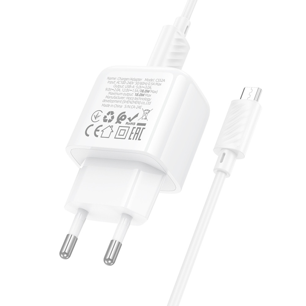 Мережевий зарядний пристрій Hoco CS52A Surplus QC3.0 Micro