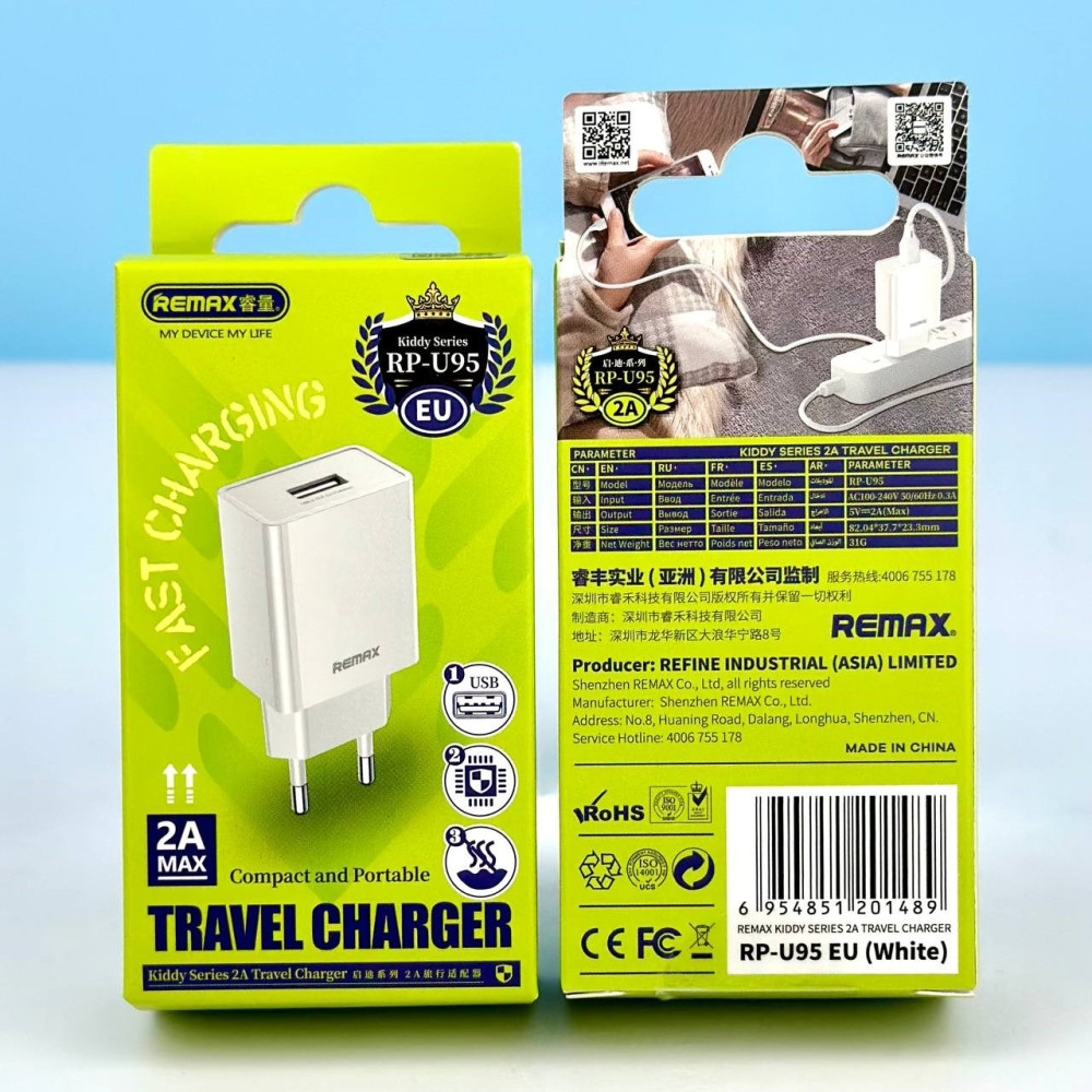 Мережевий зарядний пристрій Remax RP-U95 Kiddy Series Travel 2A