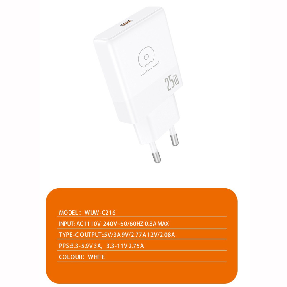 Мережевий зарядний пристрій WUW C216 GaN PD25W