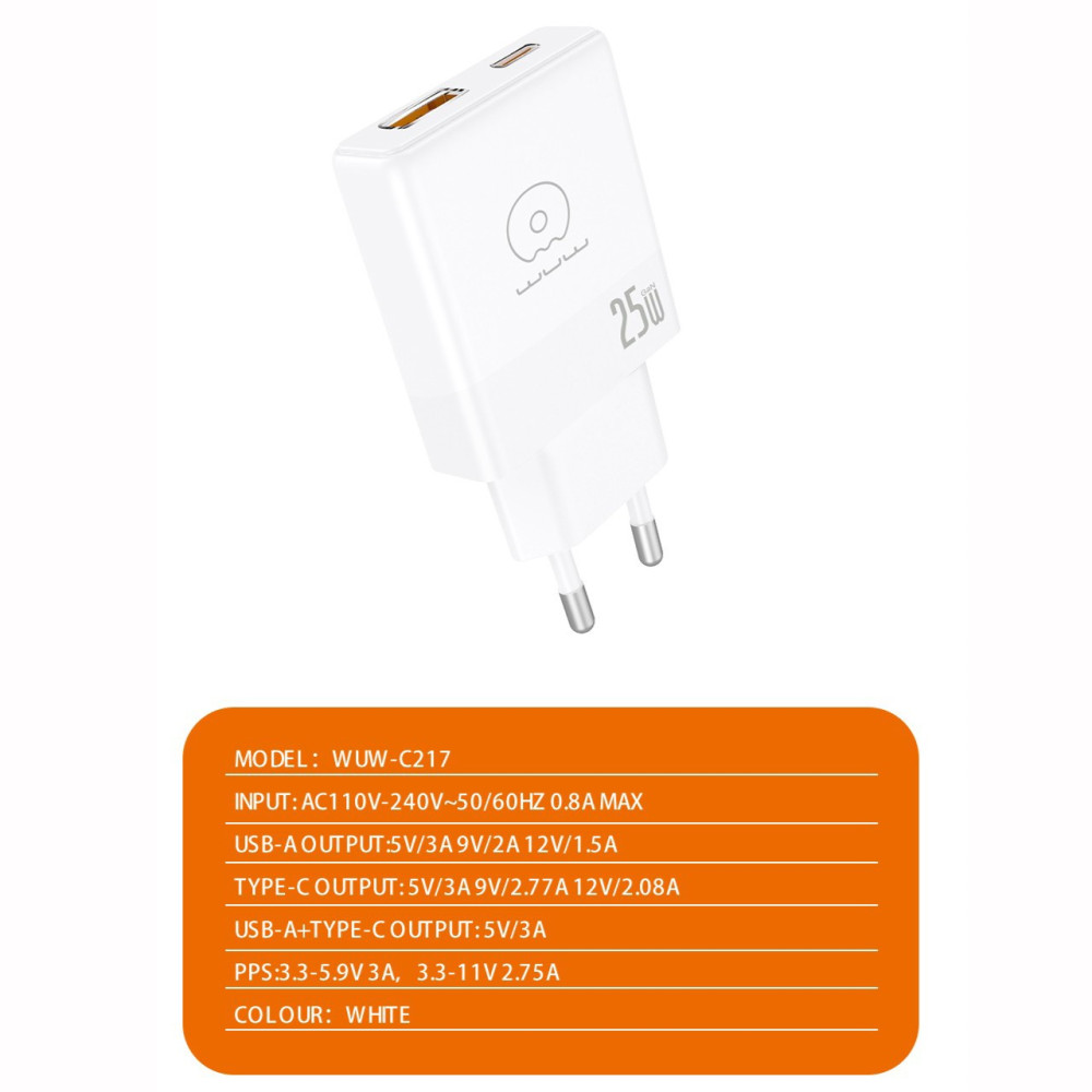 Мережевий зарядний пристрій WUW C217 GaN PD25W+QC3.0