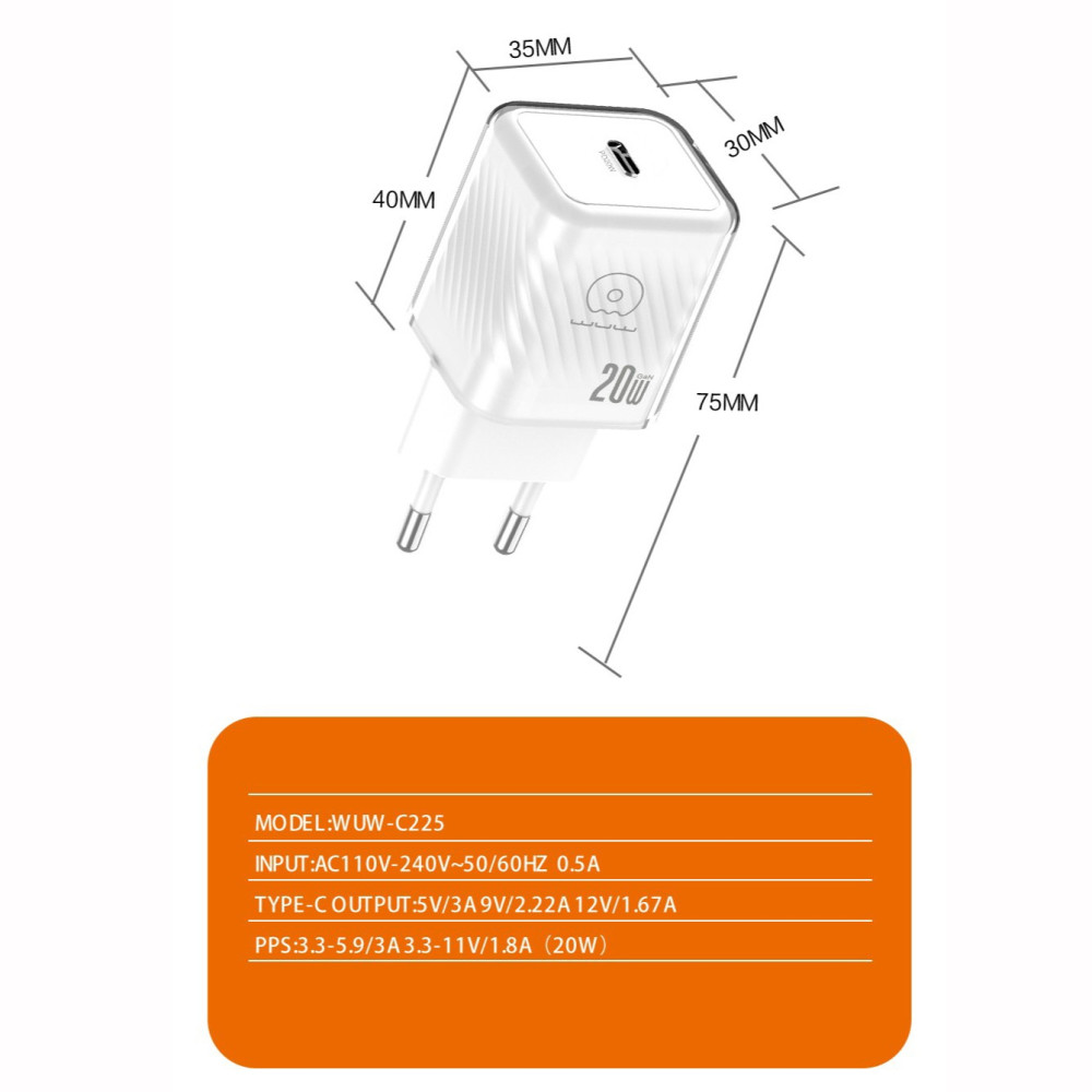 Мережевий зарядний пристрій WUW C225 GaN PD20W