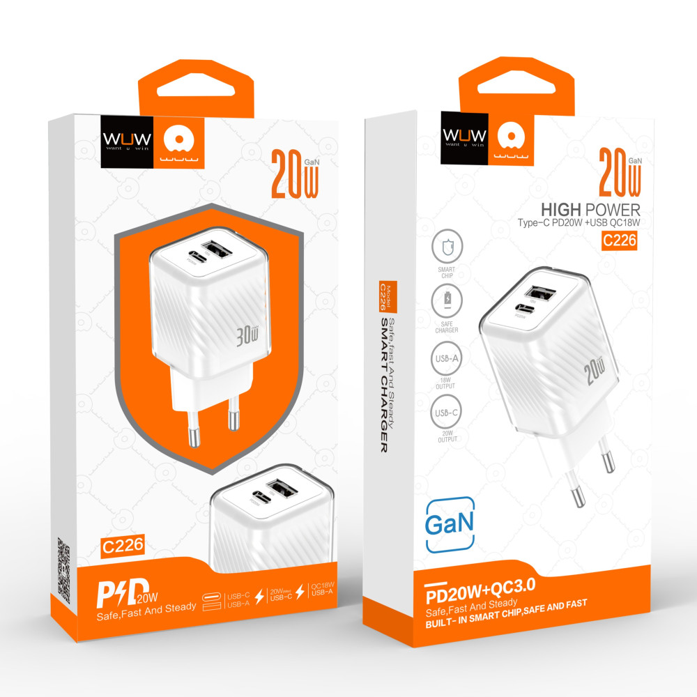 Мережевий зарядний пристрій WUW C226 GaN PD20W+QC3.0