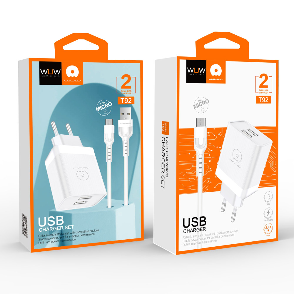 Мережевий зарядний пристрій WUW T92 2.4A Micro