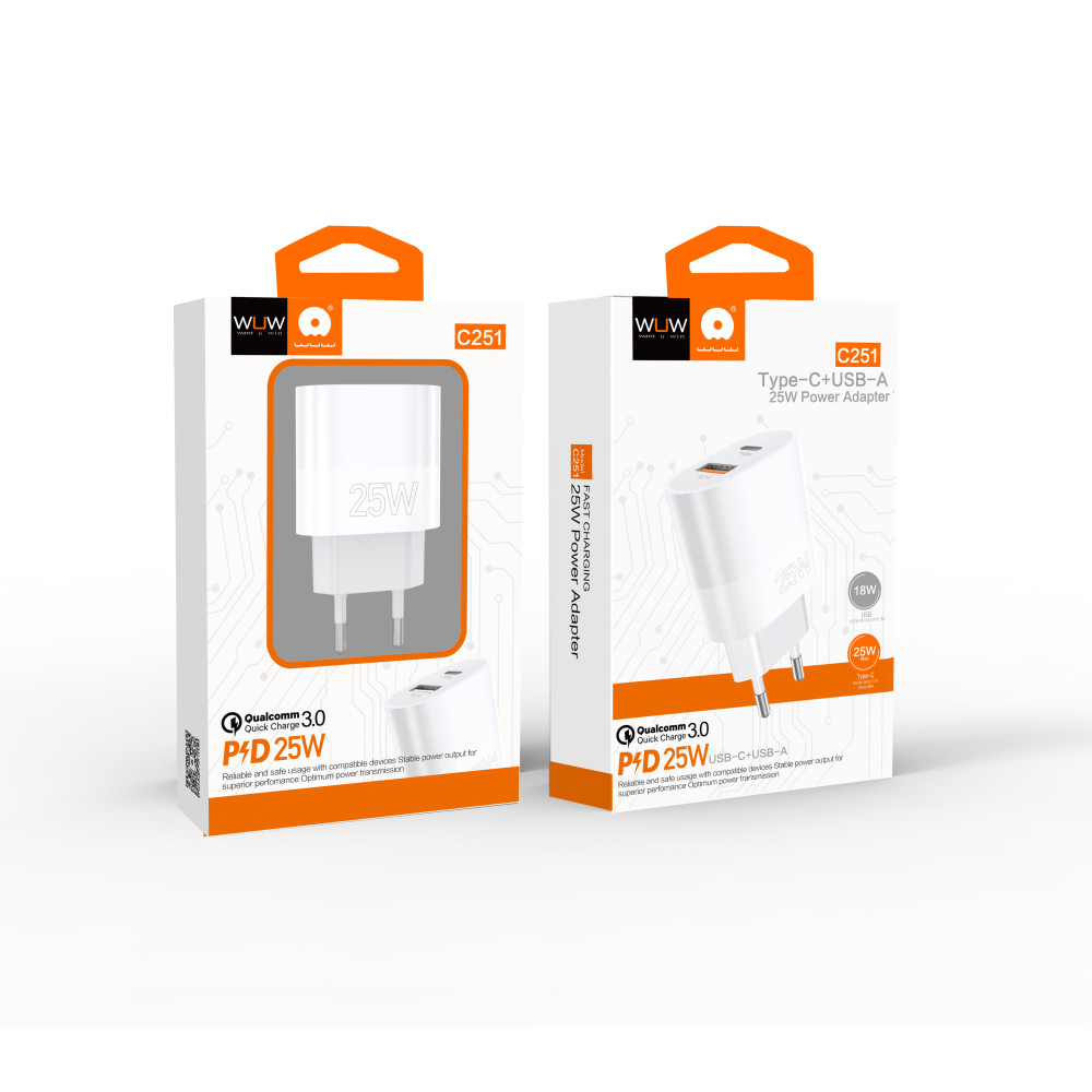 Мережевий зарядний пристрій WUW C251 PD25W+QC3.0