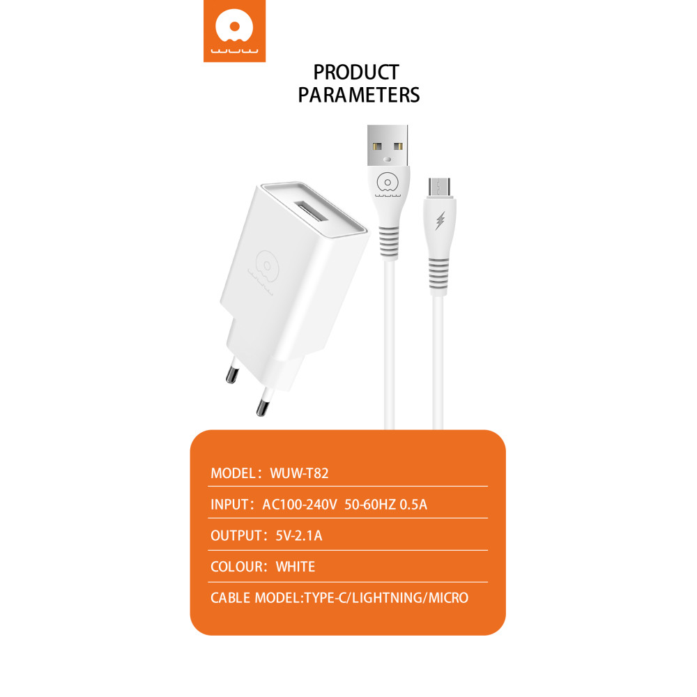 Мережевий зарядний пристрій WUW T82 2.1A Lightning
